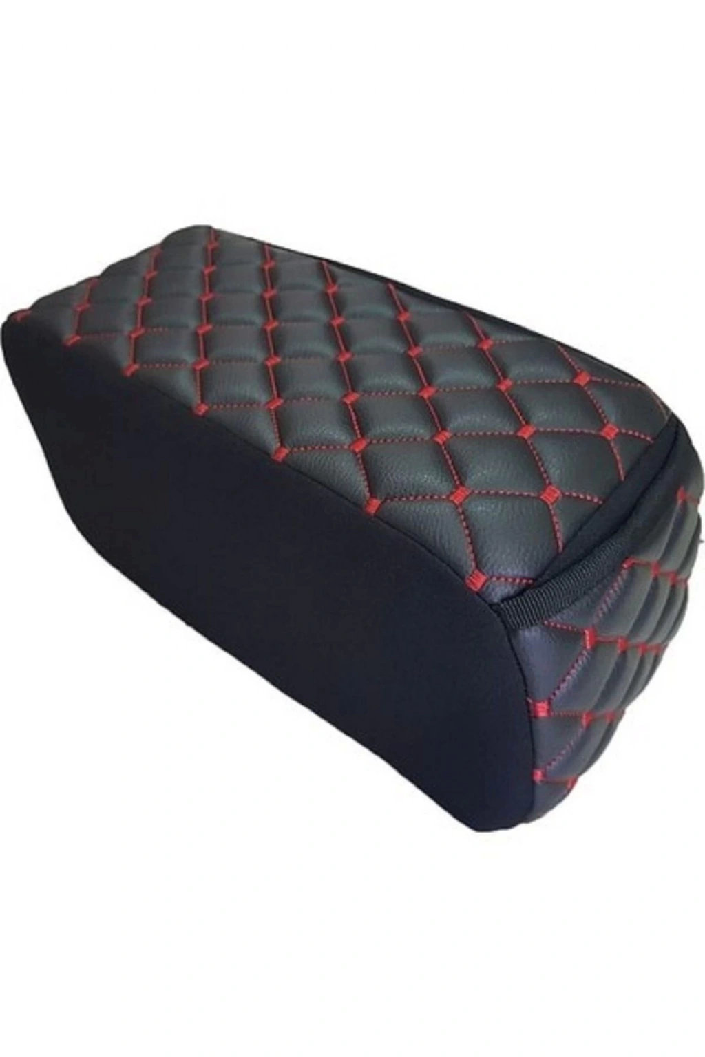 Araba Oto Kolçak Sünger Kolçak Kol Dayama Baklava Desen Siyah Deri Kırmızı Desen