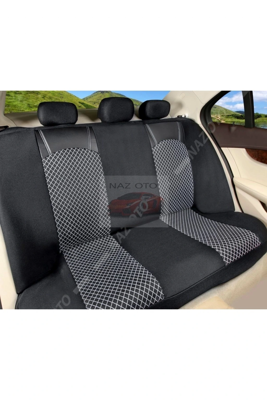 FIRST CLASS Kapitone Kumaş Siyah-Beyaz Deri ORTAPEDİK Oto Kılıfı