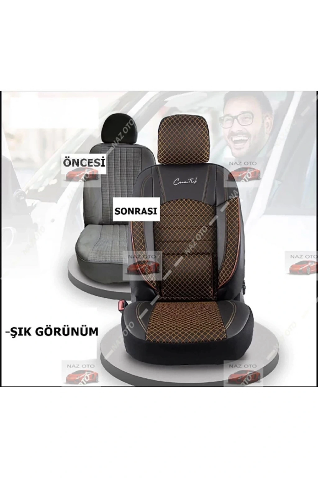 FIRST CLASS Kapitone Kumaş Siyah-Tarçın Deri ORTAPEDİK Oto Kılıfı