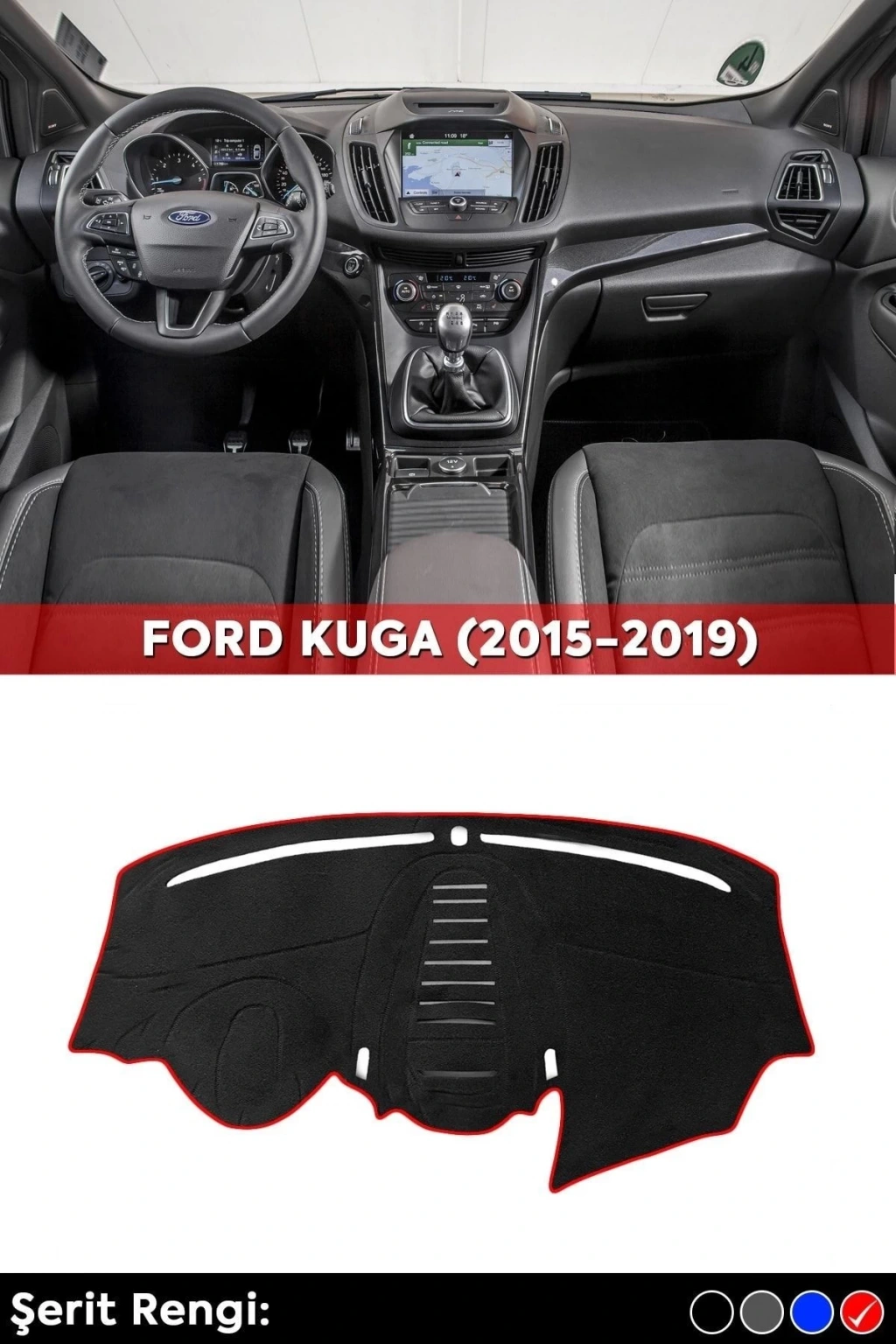 Ford Kuga (2015-2019) 3d Torpido Koruyucu Kılıf - Ön Göğüs Panel Kaplama - Kırmızı Şerit