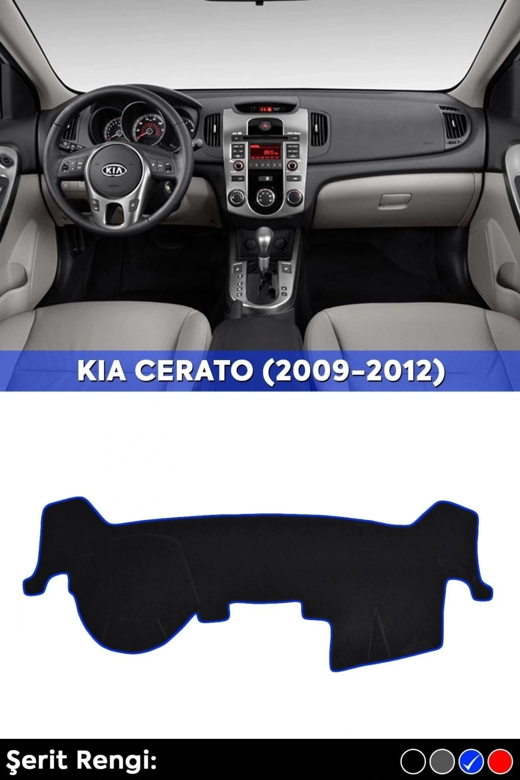 Kıa Cerato (2009-2012) 3d Torpido Koruma Kılıfı - Ön Göğüs Panel Kaplama - Mavi Şerit
