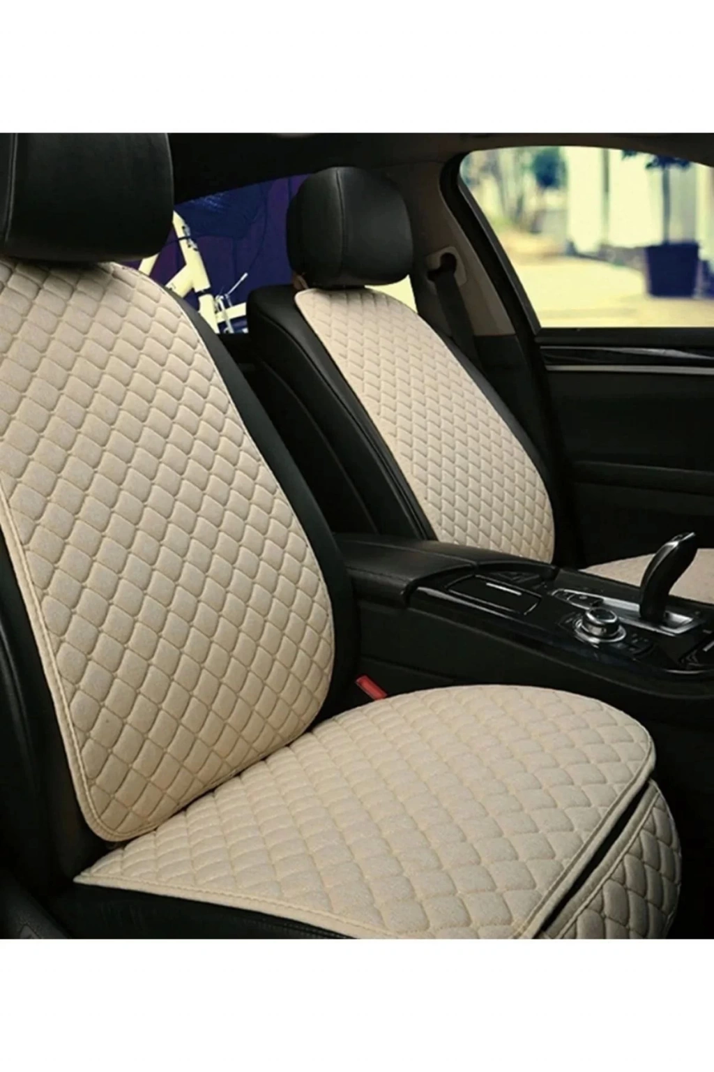 NAZOTO Araba Koltuk Minderi Kumaş Ikili Koltuk Minderi Terletmez Ergonomik Bej Bej