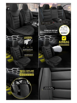 Renault Megane 1-2-3 Koltuk Kılıfı Jet Deri Siyah