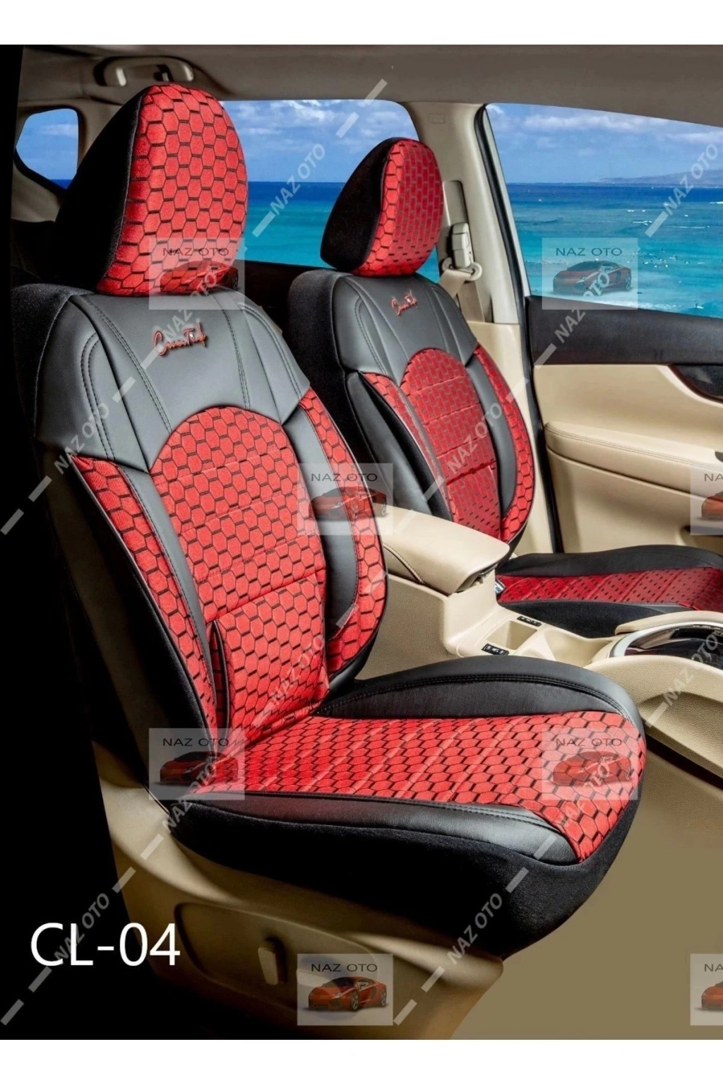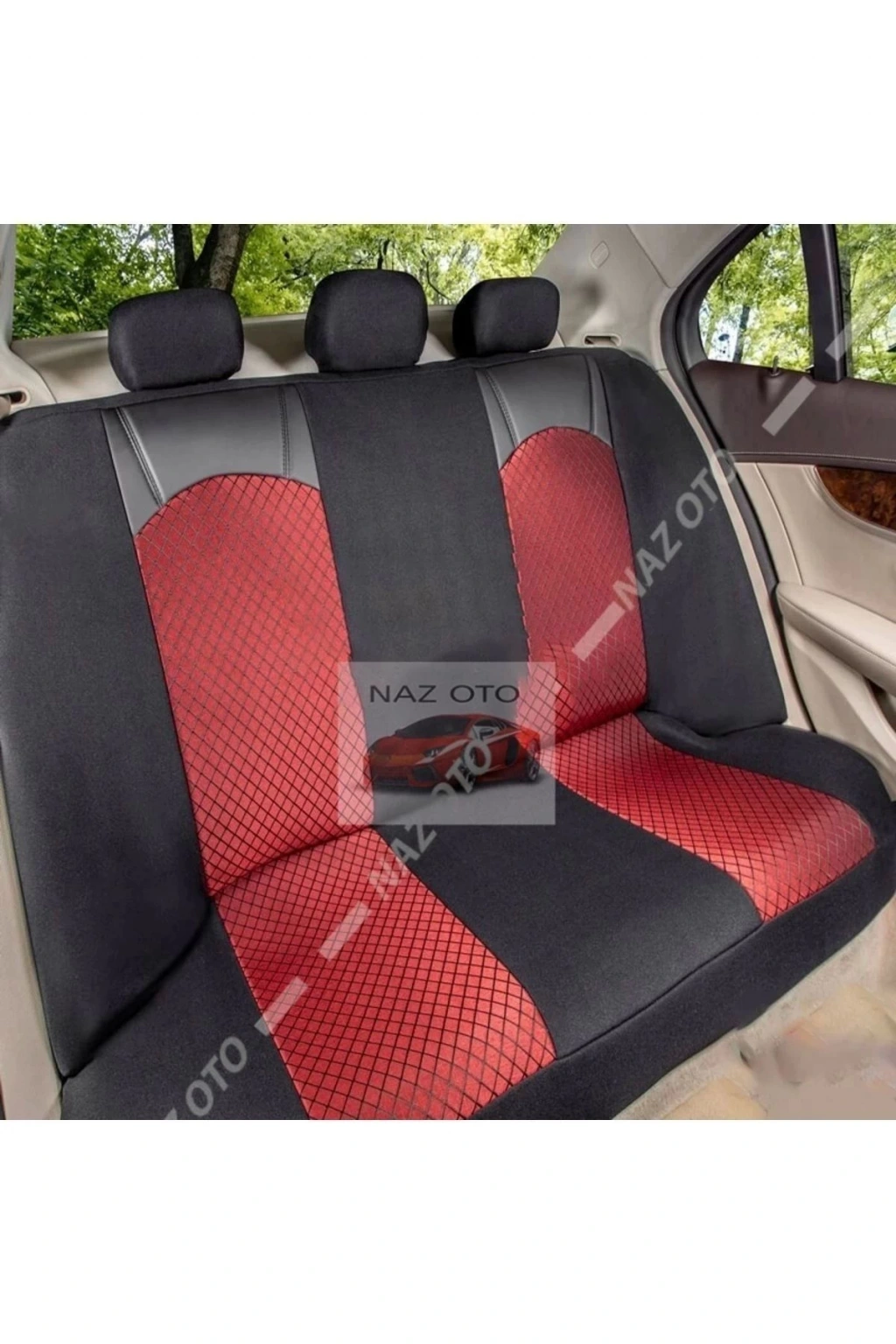 QUALİTY Petek Kumaş SİYAH-Kırmızı Deri ORTAPEDİK Oto Kılıfı